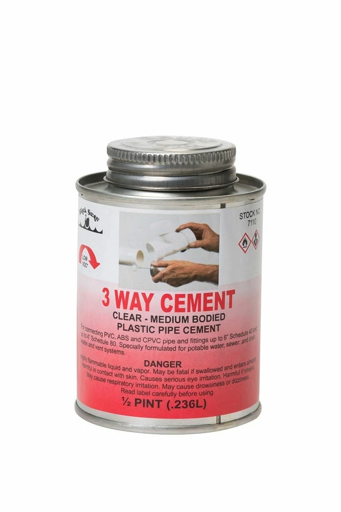Black Swan 3 Way Cement is a clear, medium bodied, medium to fast set, high strength solvent cement used to join PVC, CPVC and ABS pipe and fittings. For all classes and schedules of pipe and fittings through 6″” diameter. 3 Way Cement is most effective when used in temperature ranges from 40°F to 100°F.