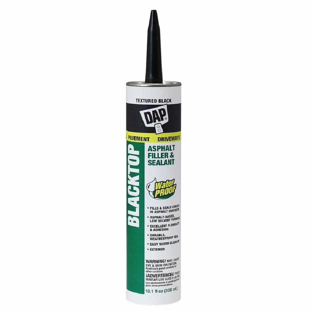 DAP Blacktop Asphalt VOC Compliant Filler & Sealant is a ready-to-use, professional grade, asphalt-based low solvent formulation for the quick and easy repair of cracks and gaps in asphalt surfaces. It doesn’t require heating or mixing and flows easily into cracks to form a long-lasting barrier which keeps out water, preventing ice damage and surface deterioration. It also provides a durable waterproof and weatherproof seal. It offers excellent adhesion and resists crumbling and drying out caused by temperature changes, UV light and severe weather conditions. This product won’t run or bubble in hot weather or become brittle or crack in cold weather. It dries to a matte black finish that may be coated with asphalt or tar-based driveway dressings.