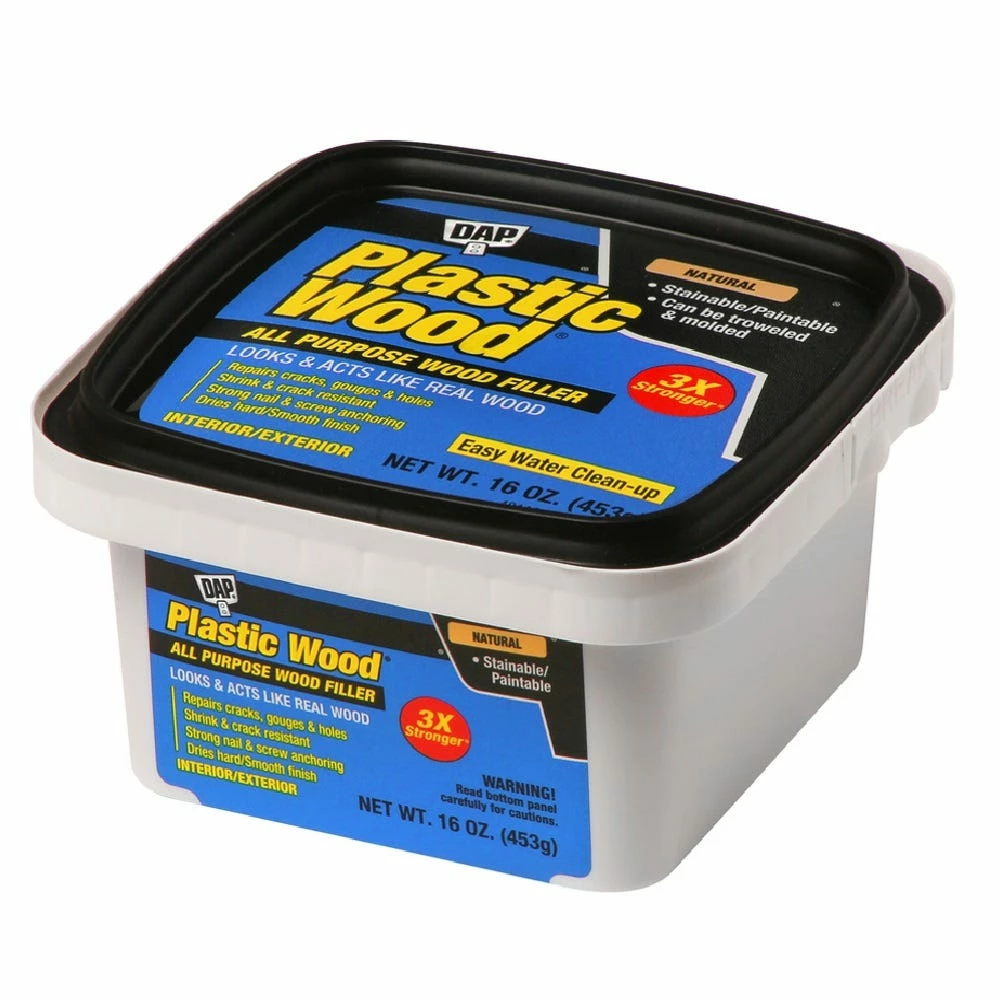 DAP Plastic Wood All-Purpose Wood Filler is a high quality, latex-based wood filler formulated to create a surface and body that looks and acts like real wood. It can be used to repair cracks, gouges, holes and other surface defects on furniture, woodwork, molding, cabinets, paneling, plywood, windows, doors and painted surfaces. This easy-to-use filler is low in odor and cleans up with water. The thick, knife-grade formula can be molded and sculpted making it ideal for corners and vertical surfaces.