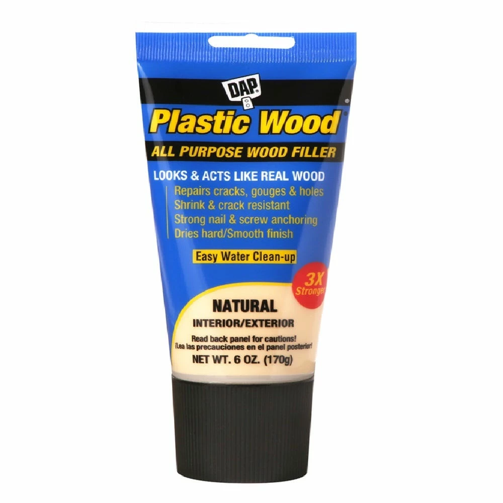 DAP Plastic Wood All-Purpose Wood Filler is a high quality, latex-based wood filler formulated to create a surface and body that looks and acts like real wood. It can be used to repair cracks, gouges, holes and other surface defects on furniture, woodwork, molding, cabinets, paneling, plywood, windows, doors and painted surfaces. This easy-to-use filler is low in odor and cleans up with water. The thick, knife-grade formula can be molded and sculpted making it ideal for corners and vertical surfaces.