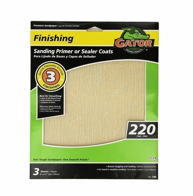 - 220 grit sandpaper is ideal for fine smoothing and for scuffing and de-whiskering of primers and sealers