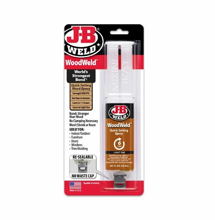 WoodWeld is a fast setting two-part epoxy system formulated for wood bonding and repairs. It provides a lasting permanent bond that is stronger than wood. Use on furniture, doors, windows, trim, molding, decks, cabinets and more.
