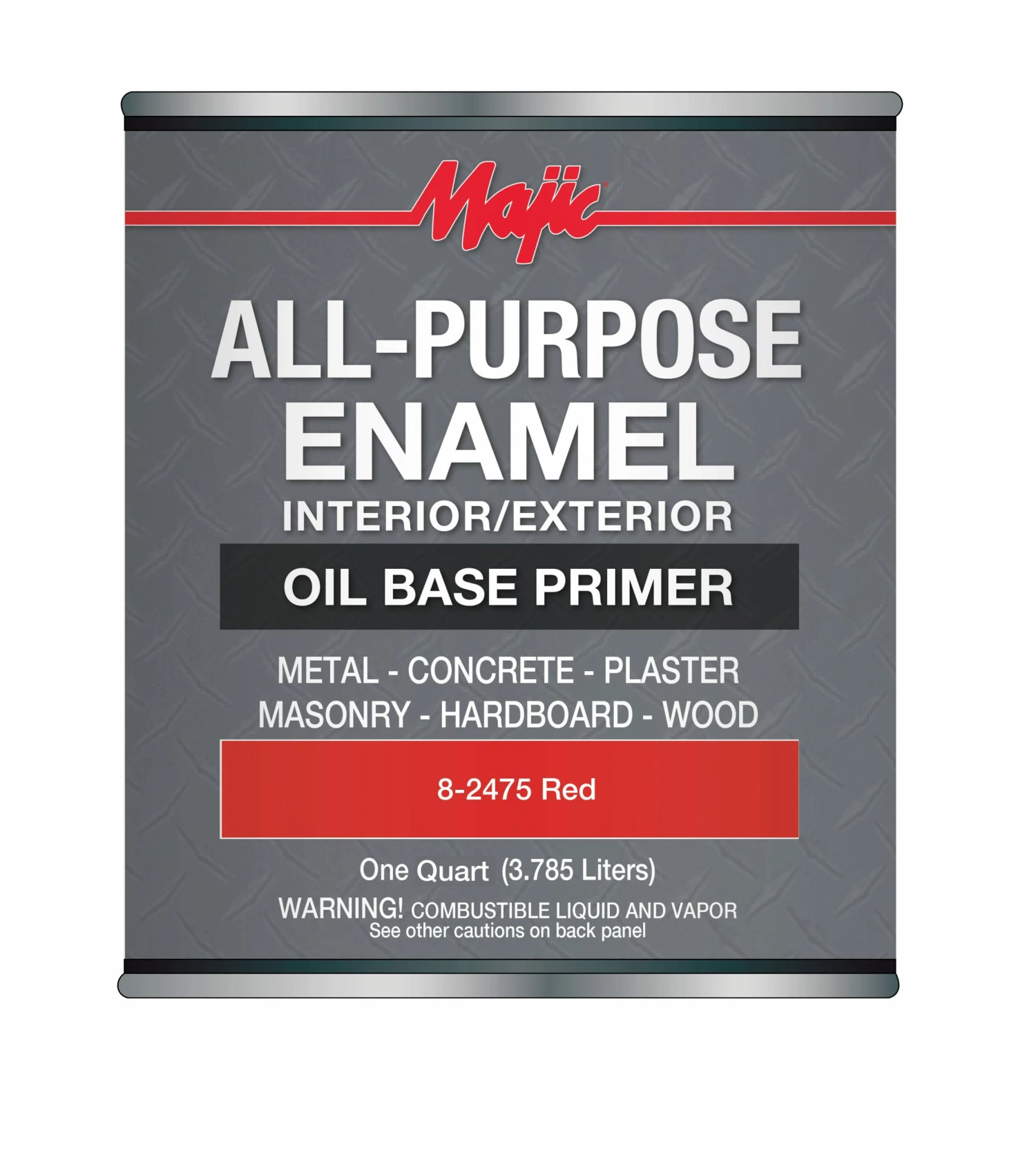 Majic Oil Base All-Purpose Enamel is recommended where a hard, durable interior or exterior finish is desired. It is an all-purpose enamel – excellent for wood, concrete, plaster, masonry, hardboard and metal.