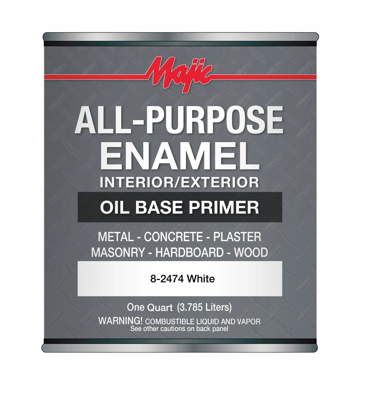 Majic Oil Base All-Purpose Enamel is recommended where a hard, durable interior or exterior finish is desired. It is an all-purpose enamel – excellent for wood, concrete, plaster, masonry, hardboard and metal.
