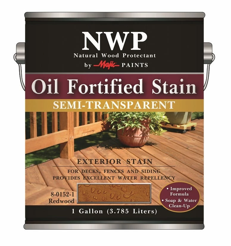 Majic Semi-Transparent House, Deck & Fence Stain provides a mildew resistant, water repellent coating for pressure treated and untreated wood, decks, siding, and fences. Beautiful semi-transparent colors protect wood against moisture, swelling, cracking, warping, splintering and discoloration.