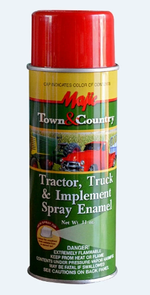 Majic Tractor, Truck, and Implement Aerosol Enamel is a durable heavy duty alkyd specially formulated for excellent adhesion, and resists weathering and harsh environments. It dries quickly to high gloss finish with Majic’s new spray tip that delivers the smoothest finish from an aerosol spray.
