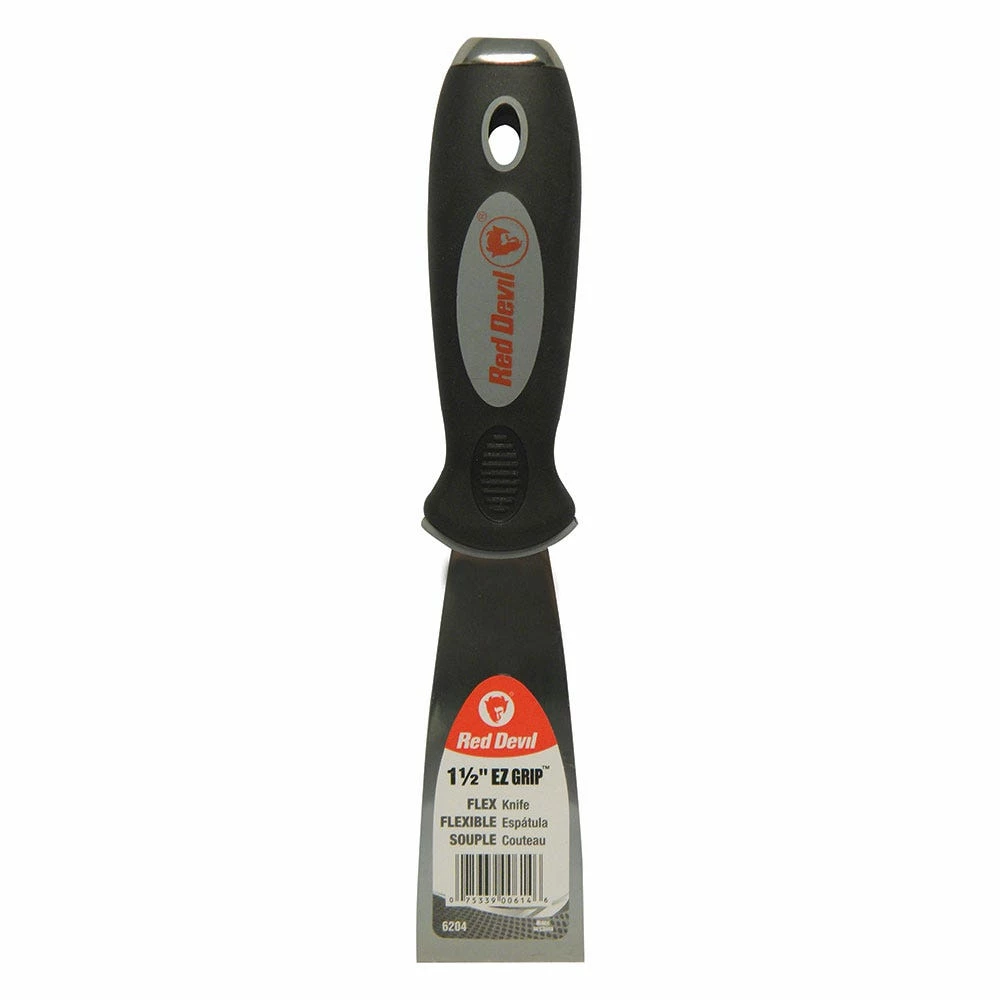 - The EZ Grip 1 1/2″ flex putty knife is specially designed with ergonomically engineered handle to decrease hand fatigue.