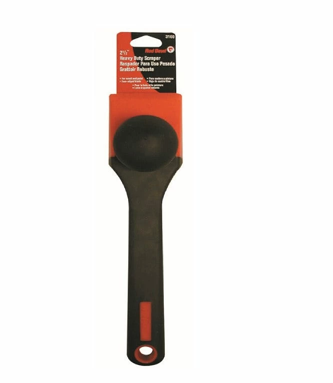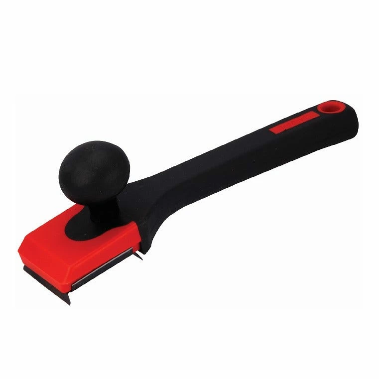 - Heavy duty scraper, four edge, contoured handle offers comfort and easy-grip knob enables user to apply two handed pressure to blade when scraping difficult areas, heavy-duty black polypropylene handle, ground 4-edge, high carbon steel blade lasts through tough jobs