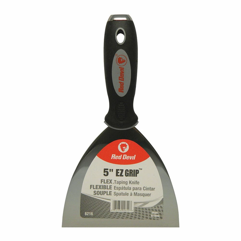 - The EZ Grip 5″ taping knife is specially designed with ergonomically engineered handle to decrease hand fatigue.