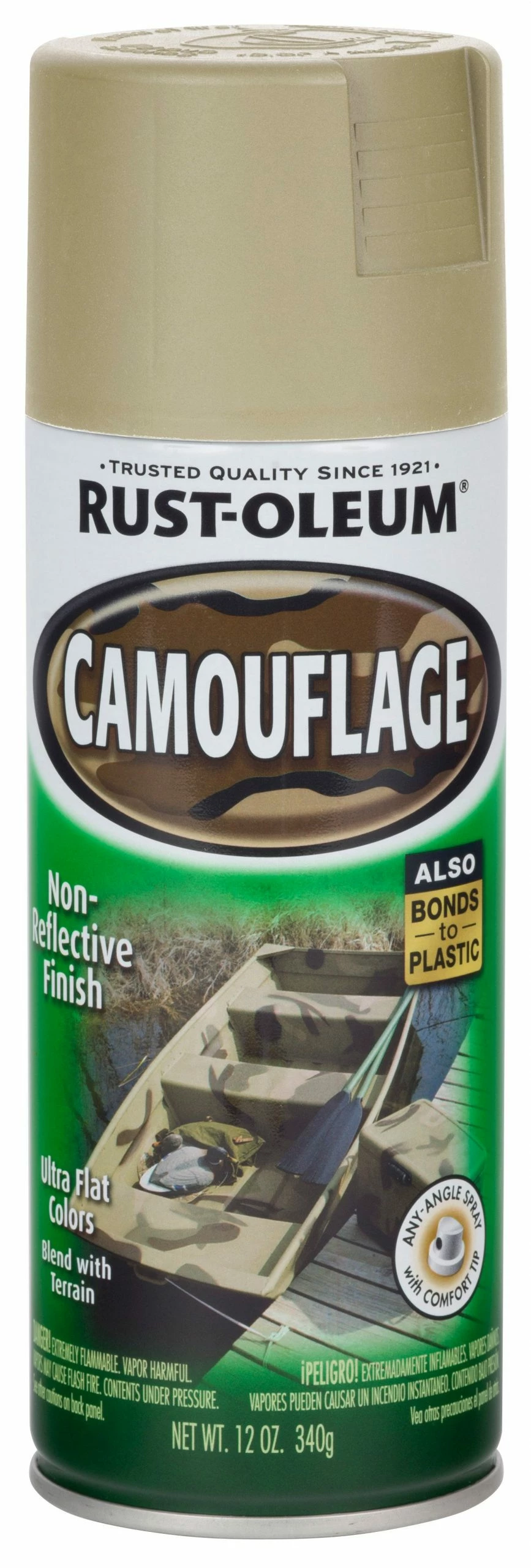 - Rust-Oleum camouflage sprays produce a non reflective “dead flat” finish which dry quickly