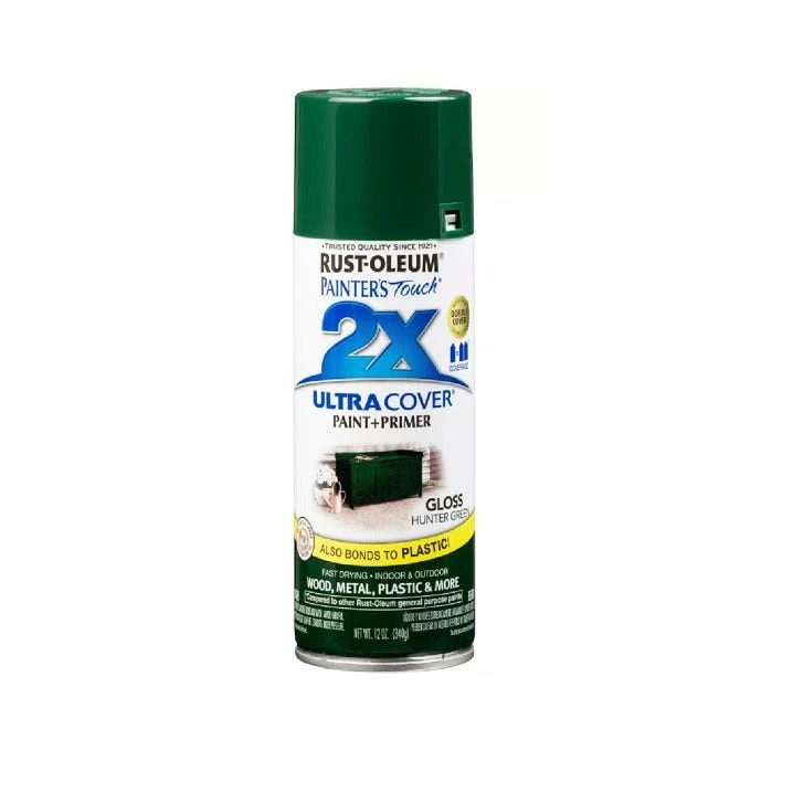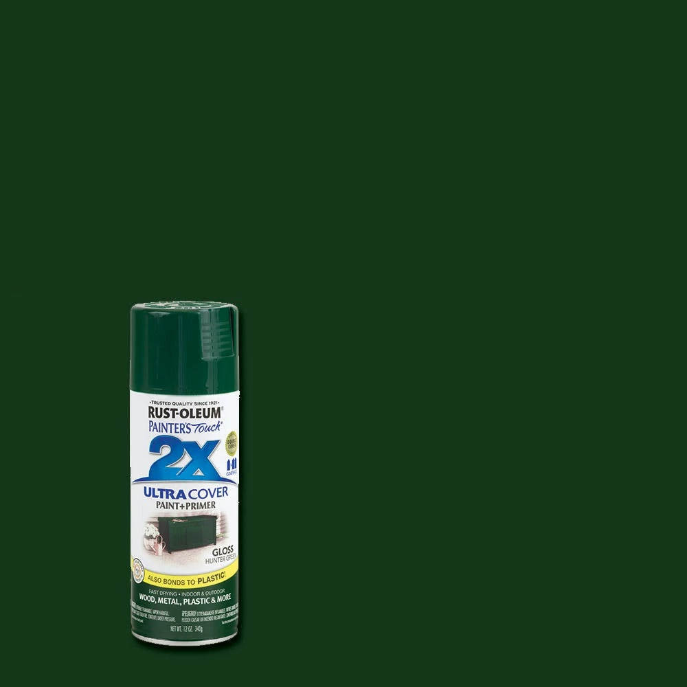 Rust-Oleum Painter’s Touch 2 x Ultra Cover Paint and Primer Hunter Green Gloss Spray – 249111 – Spray Paint