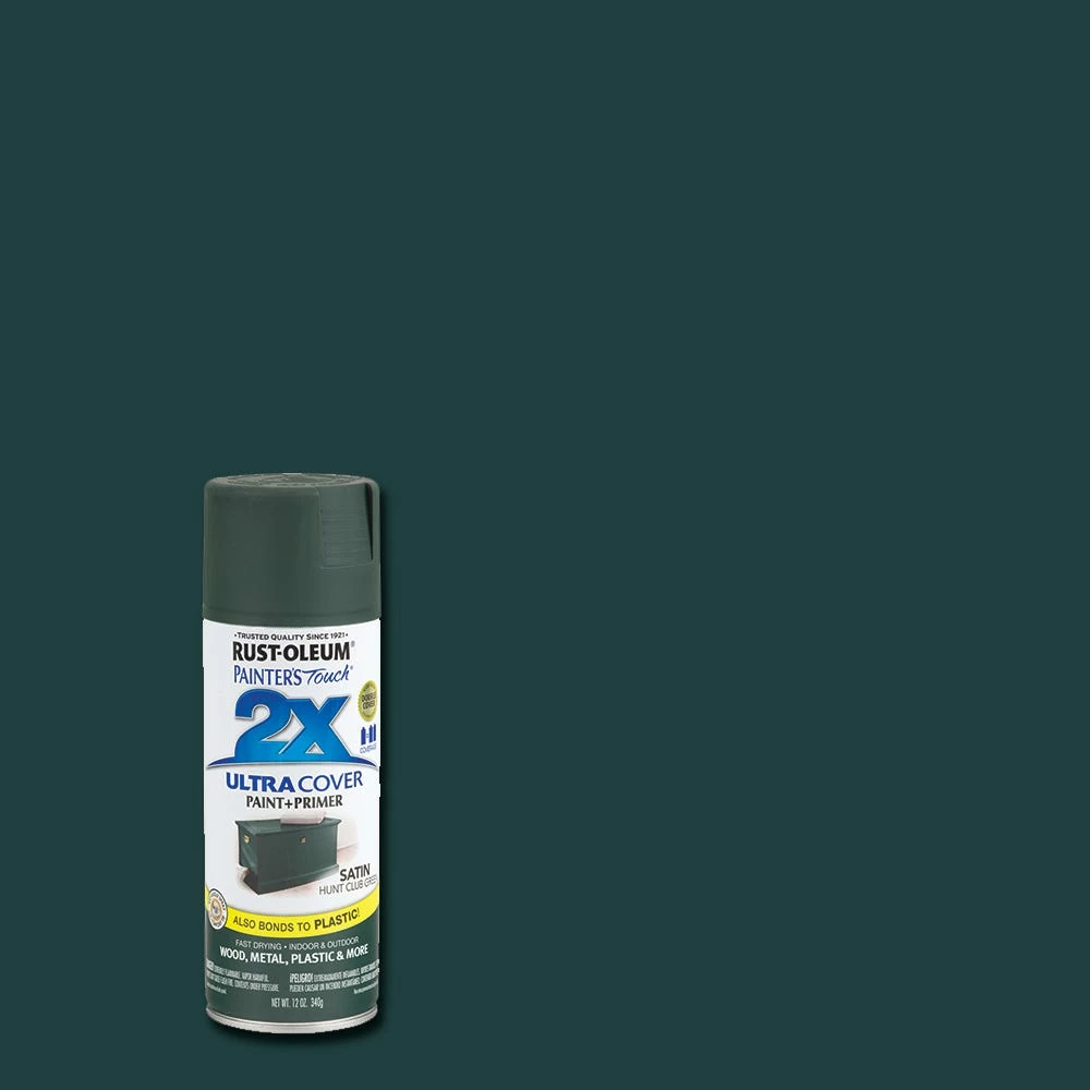 Rust-Oleum Painter’s Touch 2 x Ultra Cover Paint and Primer Satin Hunt Club Green Spray – 249074 – Paint, Primer & Stain