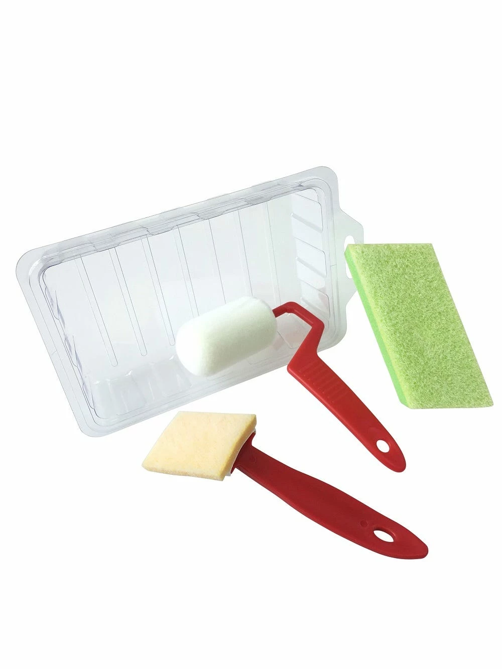 The Shurline 4-Piece Deck Detail Kit allows you to stain even tight and difficult spots on your deck. It includes a stain pad, trim- and touch-up pad , flock roller and frame, and a plastic tray. These tools apply stain smoothly and easily without dripping and NO LINTING. Can be used with most coatings including stain, polyurethane, UV protectants, and paint.