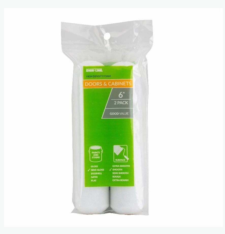 High Density Foam provides an ultra smooth finish with minimal stippling and bubbling. Foam rollers are especially absorbent, which translates to taking in a larger volume of paint than a traditional roller making them well suited to large surface areas. Another benefit to absorbing liquids easily is that when the outer surface of the foam is smooth, it redistributes that same liquid evenly. Because these rollers offer high-density foam they are extremely useful on smooth surfaces where the roller can glide along and dispense paint such as on doors, cupboards, shelves, jambs, window frames, furniture and more! Designed for use with water or oil based stains, enamels, varnishes and urethanes. Package includes (2) 6″ covers for use on a mini-roller frame.