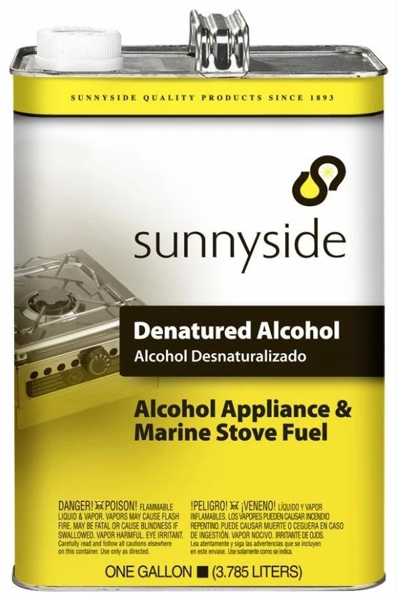 Sunnyside 834G1 Denatured Alcohol Solvent 1 Gallon is pure 100% denatured ethyl alcohol. Recommended thinner and cleaner for shellac. Also use as a clean burning fuel for use specifically in alcohol burning appliances.