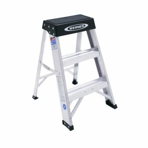 The model 150B Step Stool has a large molded top that provides a large standing platform and a duty rating of 300 pounds. The TRACTION-TRED steps are slip resistant and the external spreaders are pinch proof. Bottom step has double channel braces and the molded vinyl foot pads are riveted to the rails. The 150B is ideal for construction, plant, office or home applications.